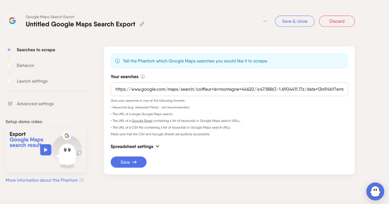PhantomBuster : partir d’un lien Google Maps