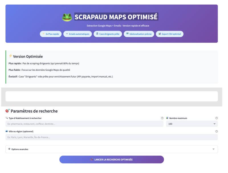 L’outil se charge de la partie technique : connexion à Google Maps, gestion des proxys, rotation d’IP, etc.